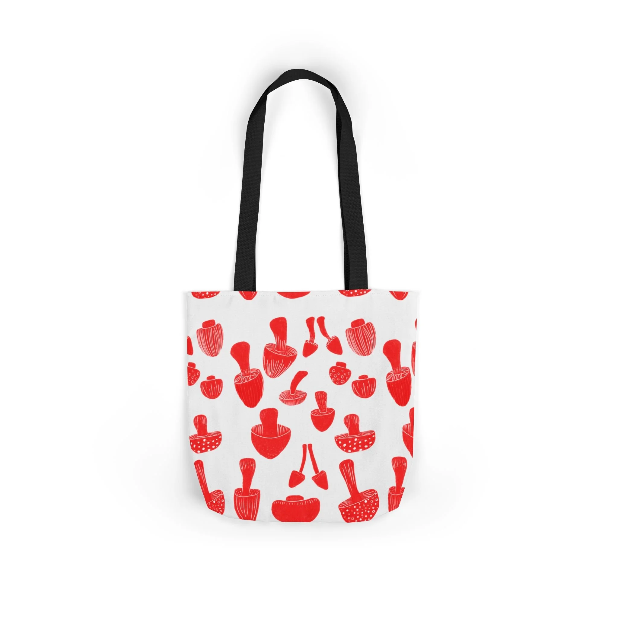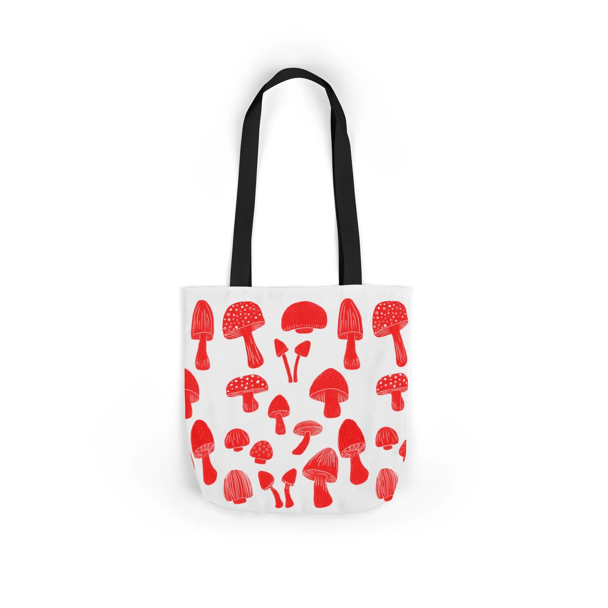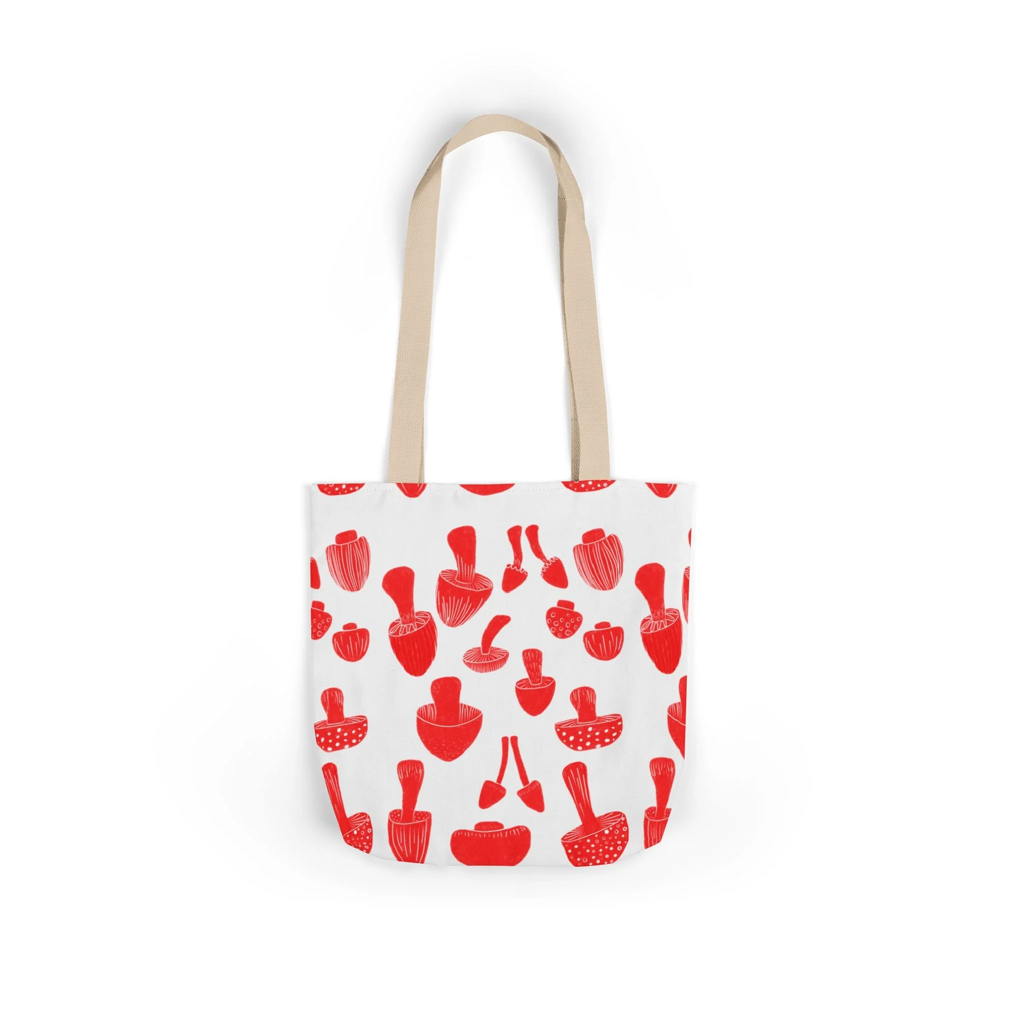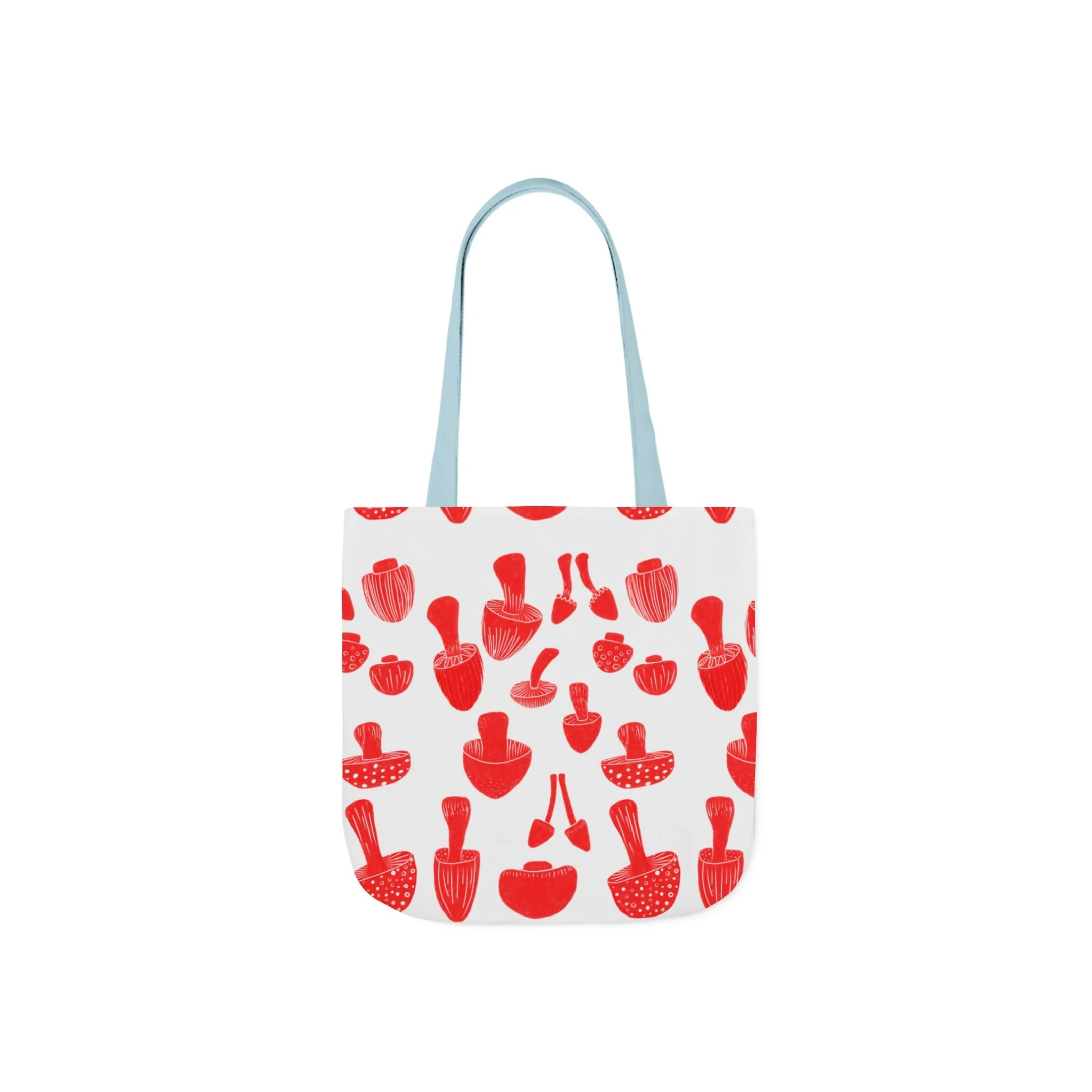 Whimsical Mushroom Canvas Tote Bag with Coloruful Straps