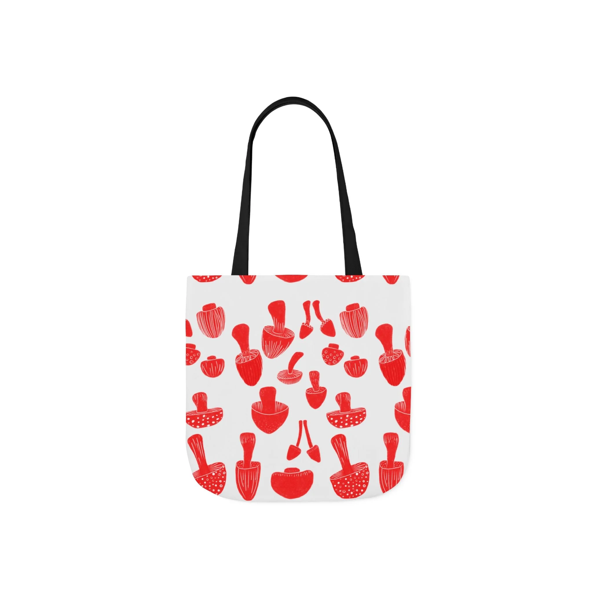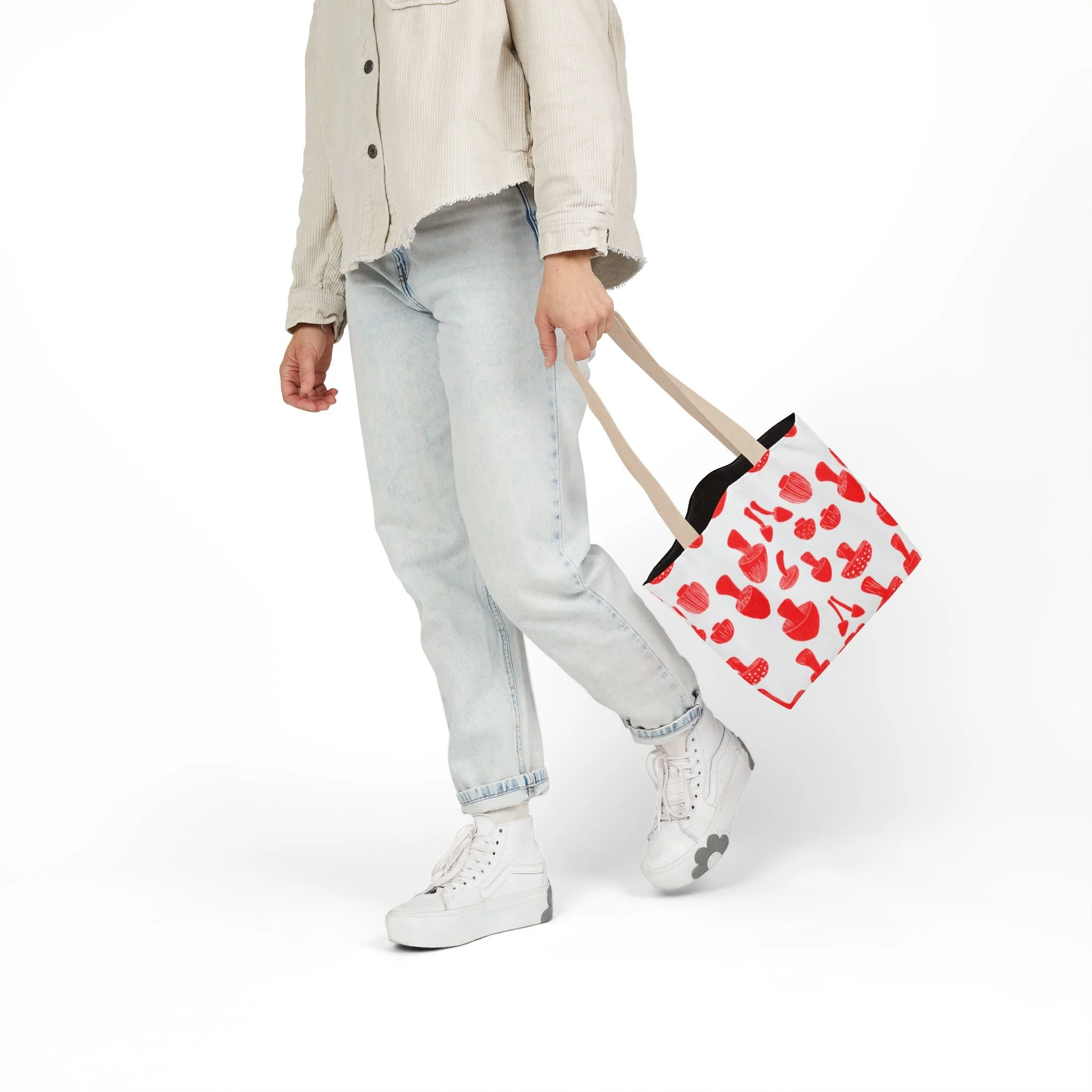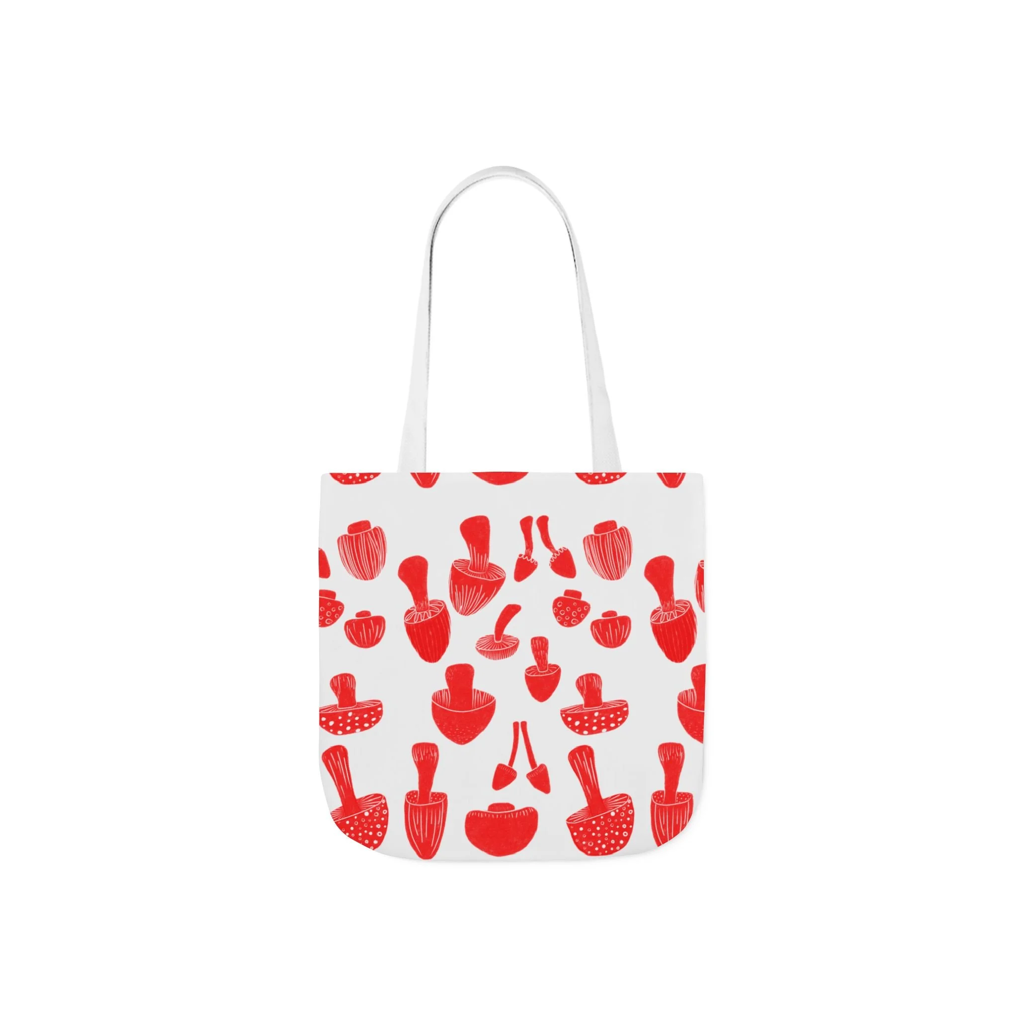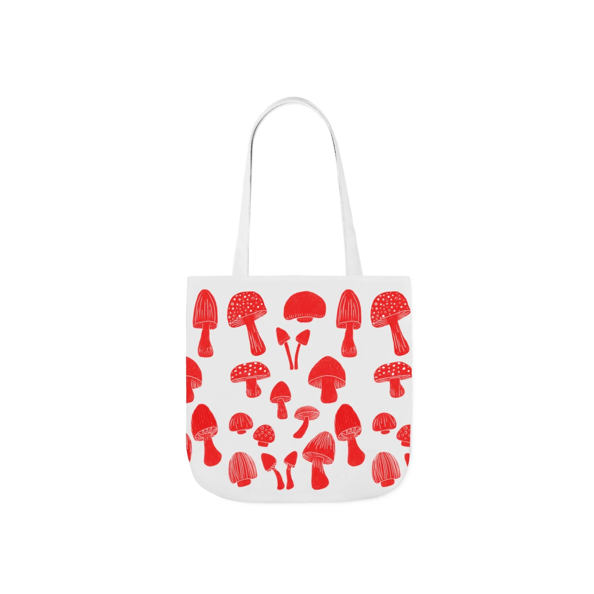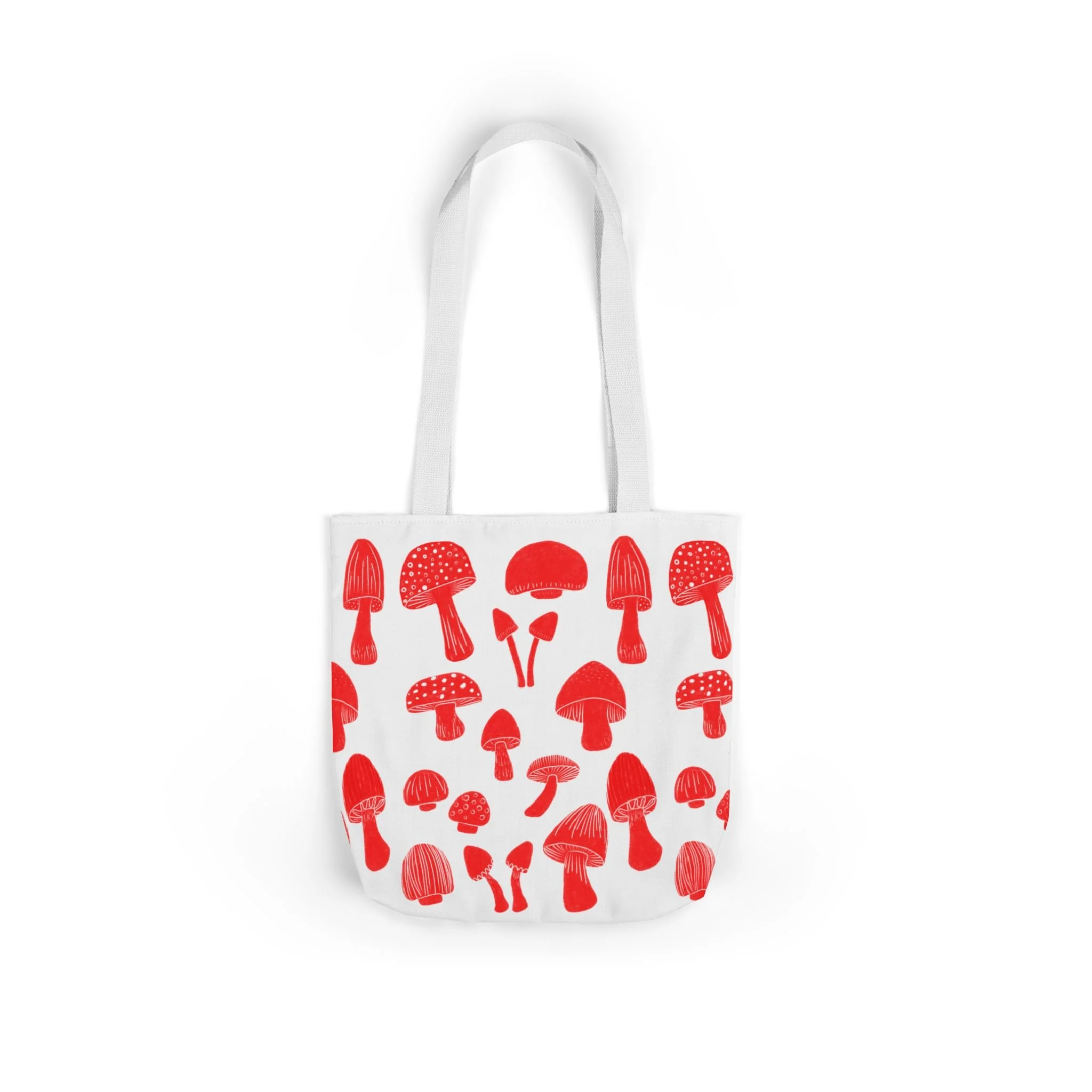 Whimsical Mushroom Canvas Tote Bag with Coloruful Straps